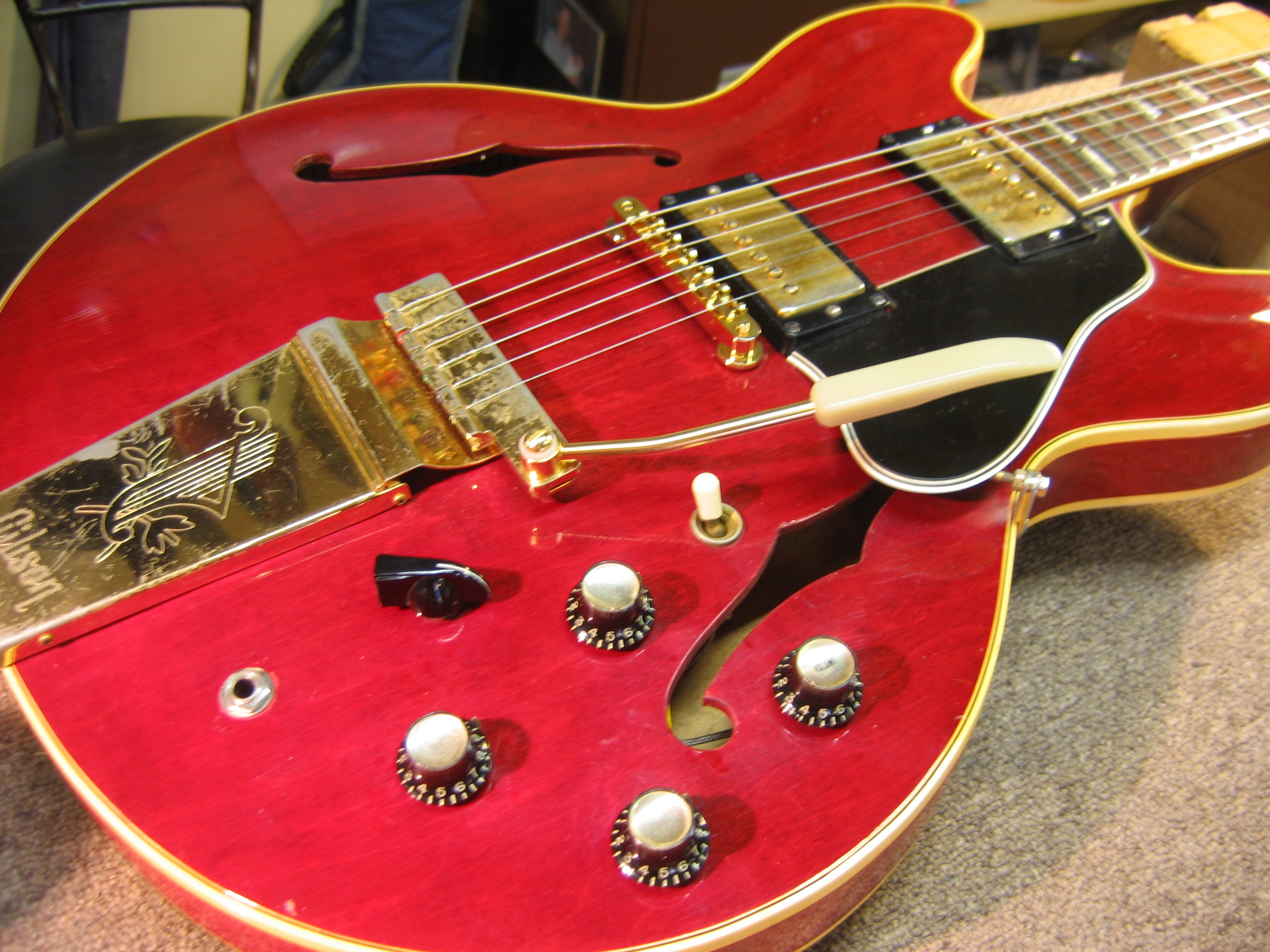 With a new bar for the Vibrola tailpiece, and the guitar polished & set up, it looks and sounds great. There’s just something about those early Gibson humbuckers… Very nice.